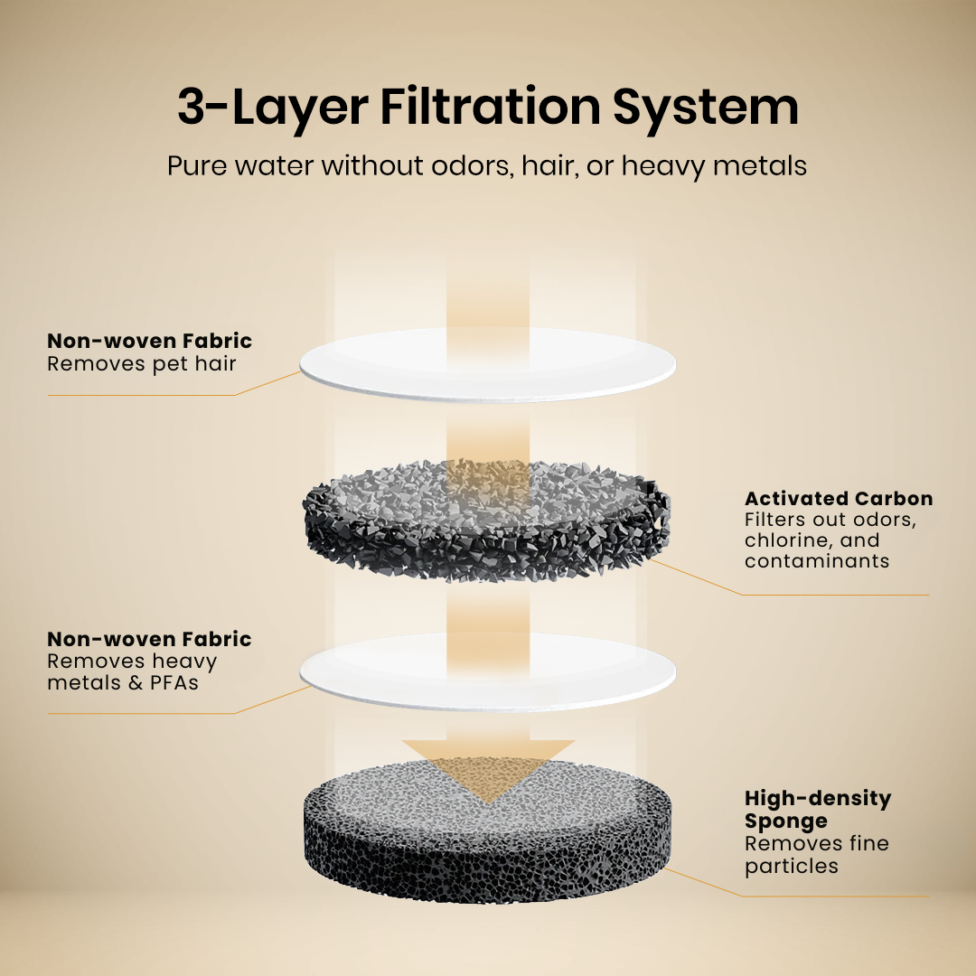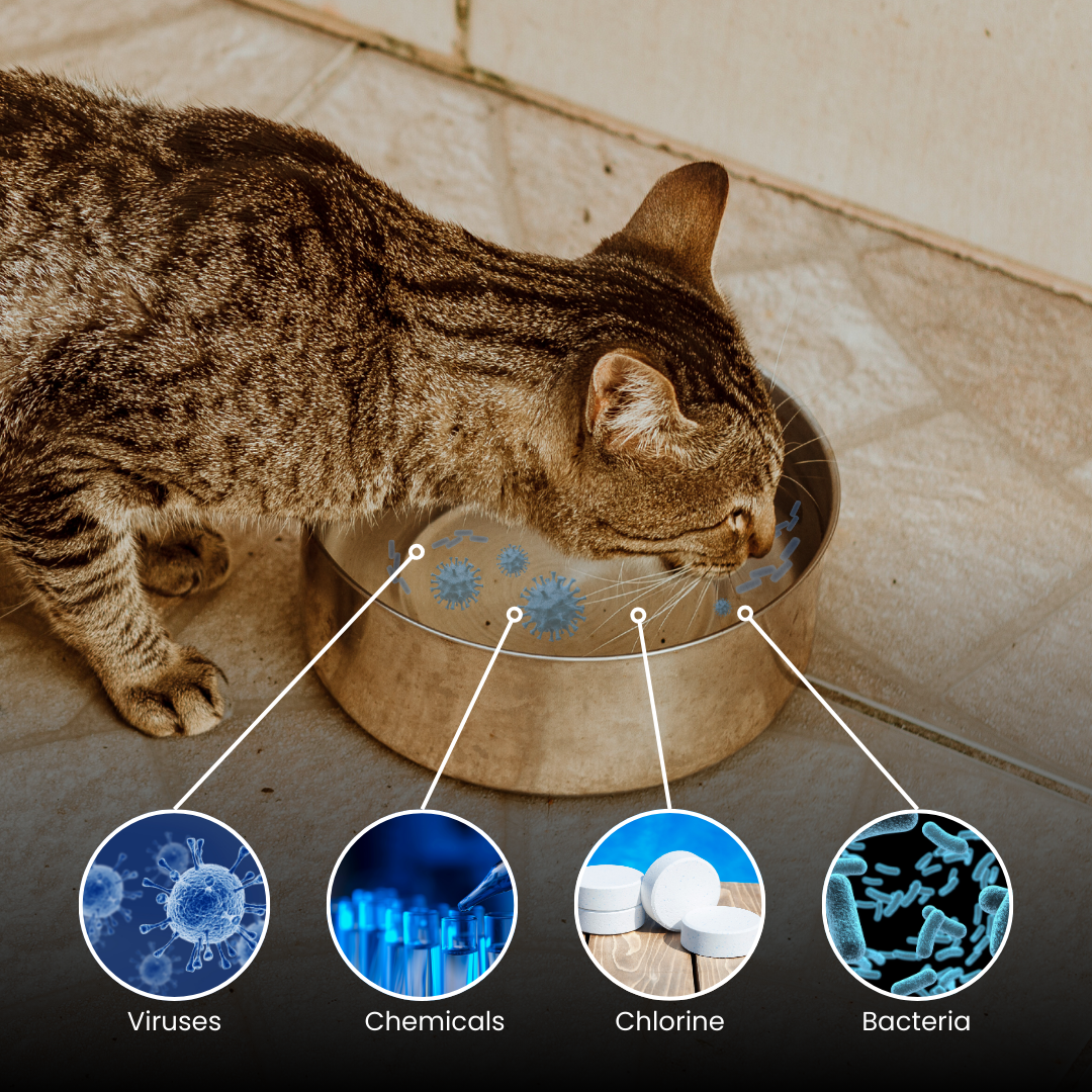 Our triple carbon-activated filtration system works to remove PFAS, chlorine, heavy metals, and microplastics—effectively addressing the toxins that could harm your cat's health.