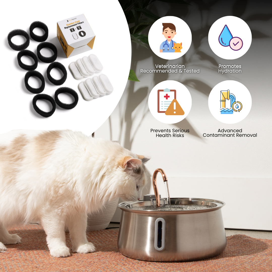 Not only do our filters clean the water, but they also enhance its taste and smell, encouraging your cat to drink more and stay hydrated.