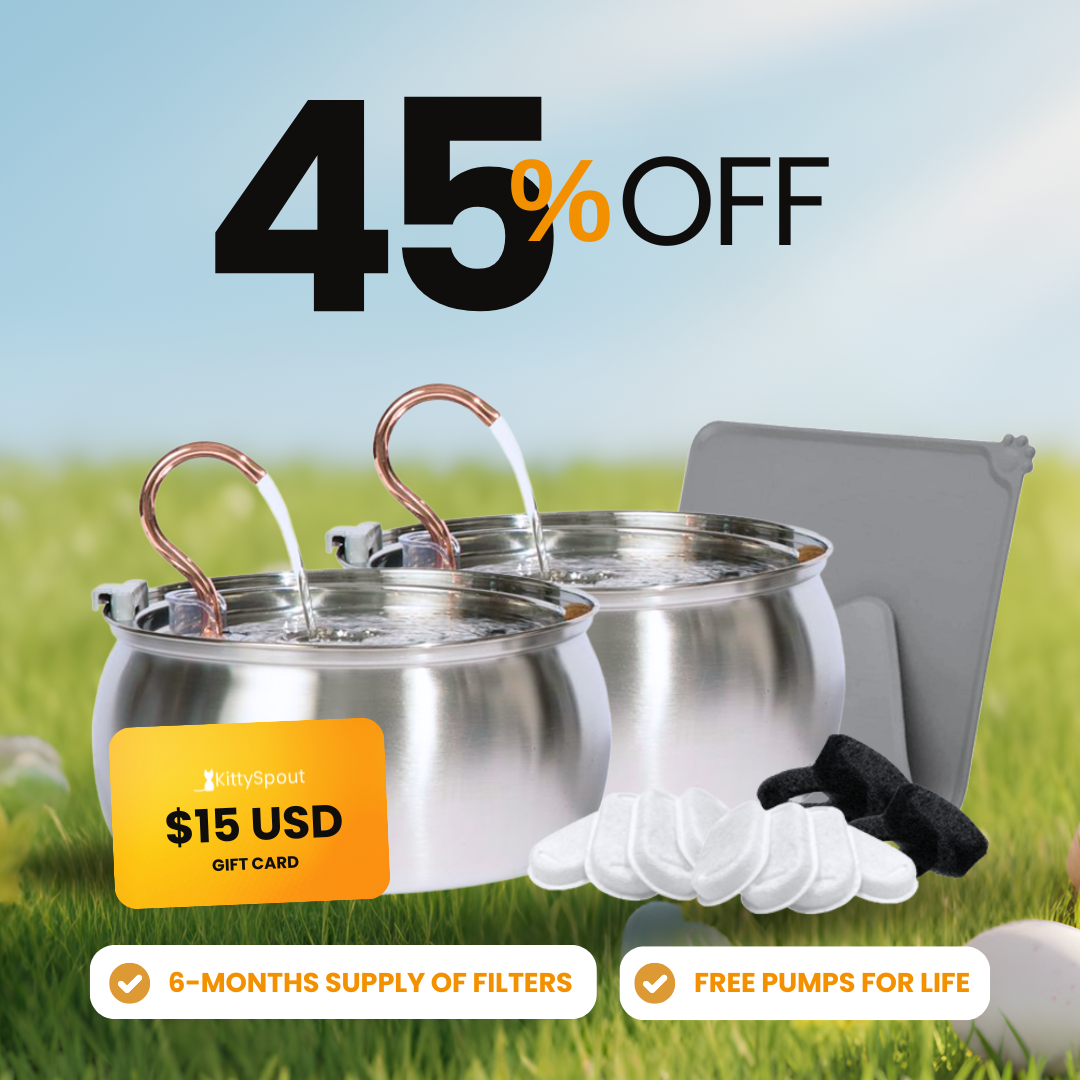 Los gatos que beben mucha agua son más sanos, felices y activos. Además, tienen menos probabilidades de sufrir infecciones de vejiga y riñones, que son las principales enfermedades que padecen los gatos. Con KittySpout, puedes ayudar a tu gato a vivir una vida más larga y mejor.