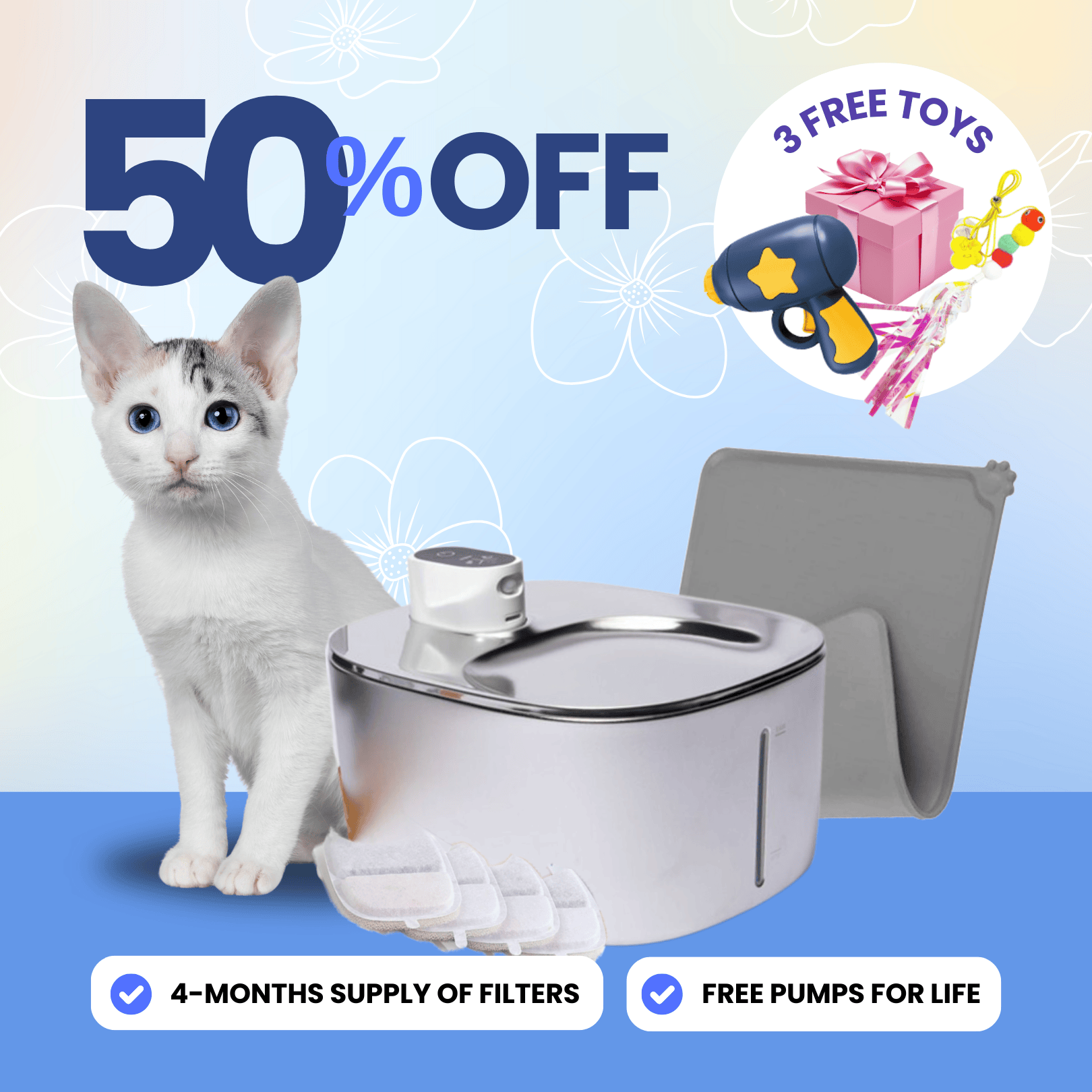 Elevate your cat's hydration and playtime. Enjoy a year's worth of filters, no water messes, and a lifelong peace of mind with water pump replacements.
