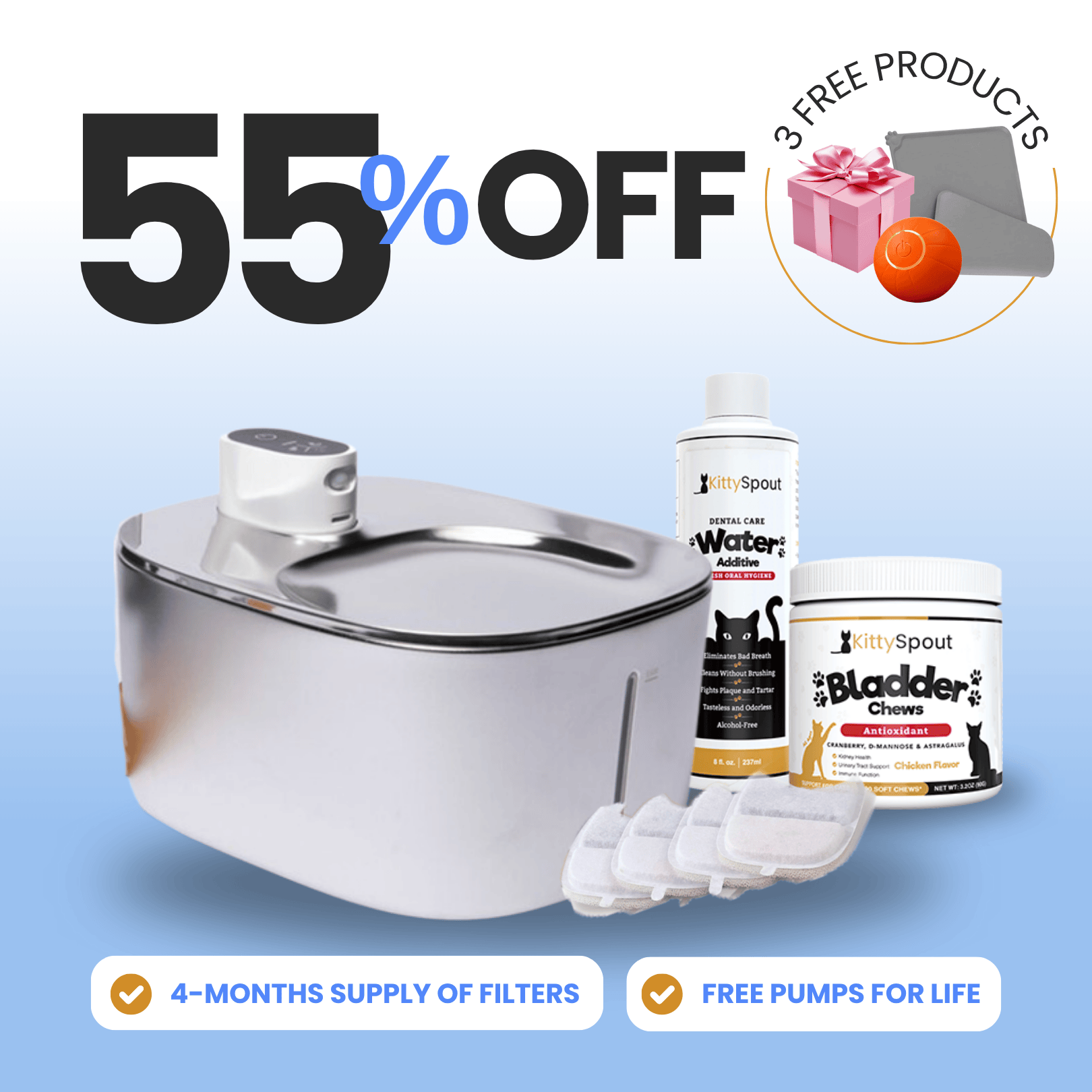 This comprehensive bundle is an all-around health and wellness solution for your beloved cat. Ensures excellent hydration, dental health, and urinary function.